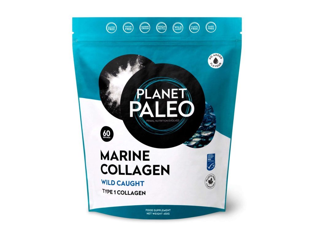- Značka Planet Paleo vyrába vysoko bio-dostupný hydrolyzovaný kolagén - morský kolagén obsahuje 93% bielkovín.