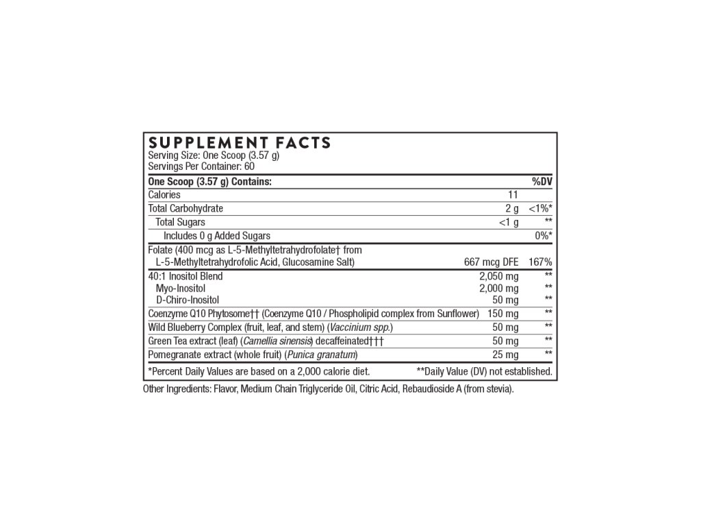 • predstavuje komplexnú kombináciu inozitolov, folátu, CoQ10 a rastlinných extraktov