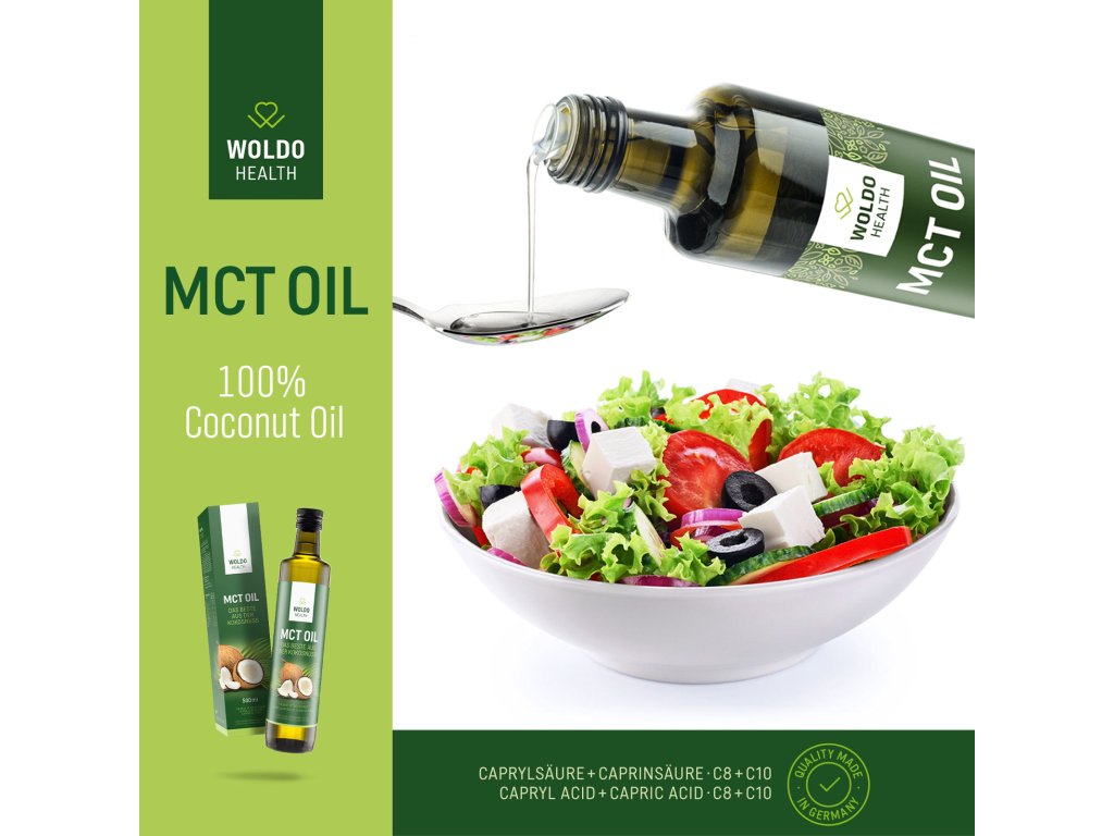 Woldohealth MCT olej je extrahovaný zo 100 % kokosového oleja z Filipín a obsahuje len najúčinnejšie formy triglyceridov so stredne dlhým reťazcom – kaprylovú (C8) a kaprinovú (C10) mastnú kyselinu v ideálnom pomere 70:30. Tieto mastné kyseliny sú známe svojou schopnosťou dodať telu okamžitú a stabilnú energiu, bez zaťaženia trávenia.